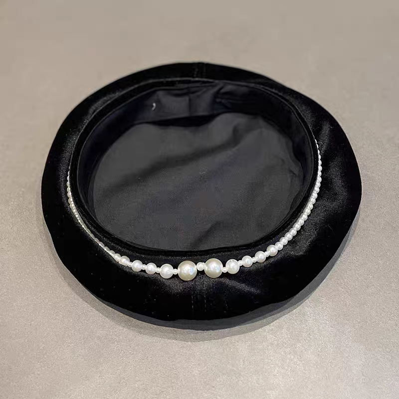Boina Francesa de Terciopelo con Detalle de Perlas