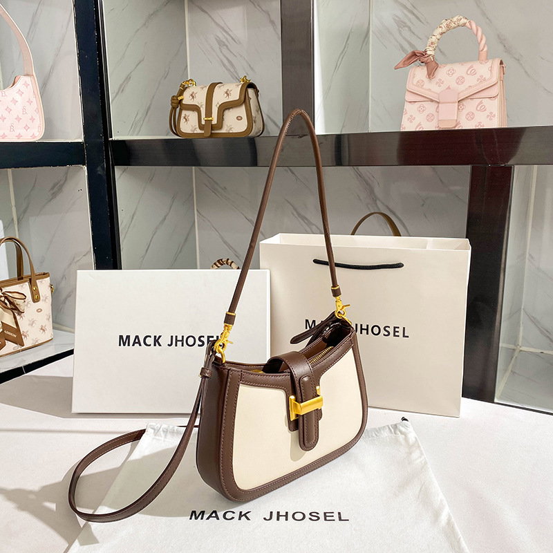 Diseño: Forma ligeramente rectangular con bordes definidos y suaves, contraste bicolor elegante y atemporal, detalle metálico a manera de cierre.
