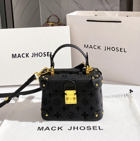 Detalles Exclusivos: Estampado bordado, con herrajes dorados brillantes, refuerzos en las esquinas que simulan un estilo baúl.