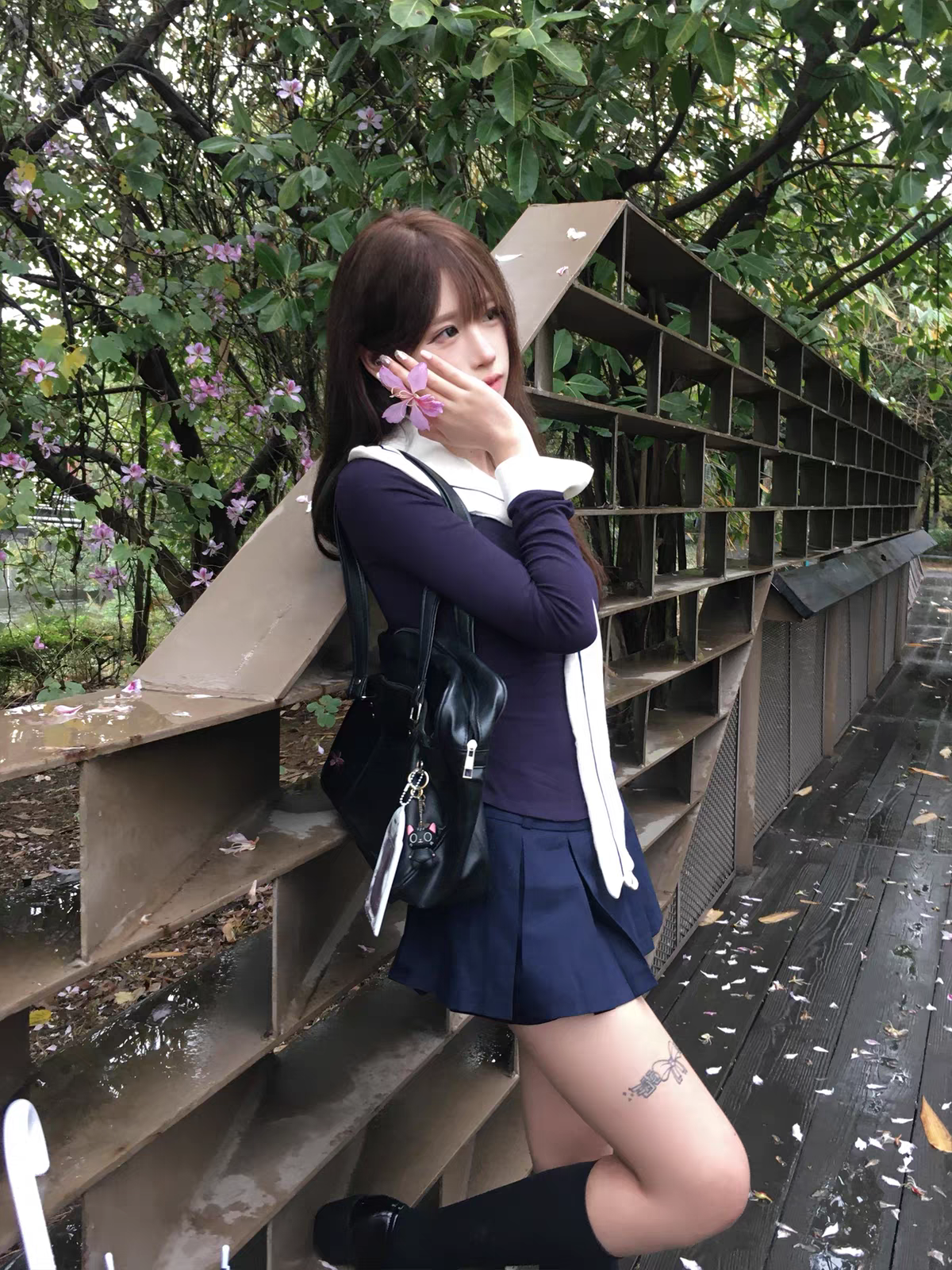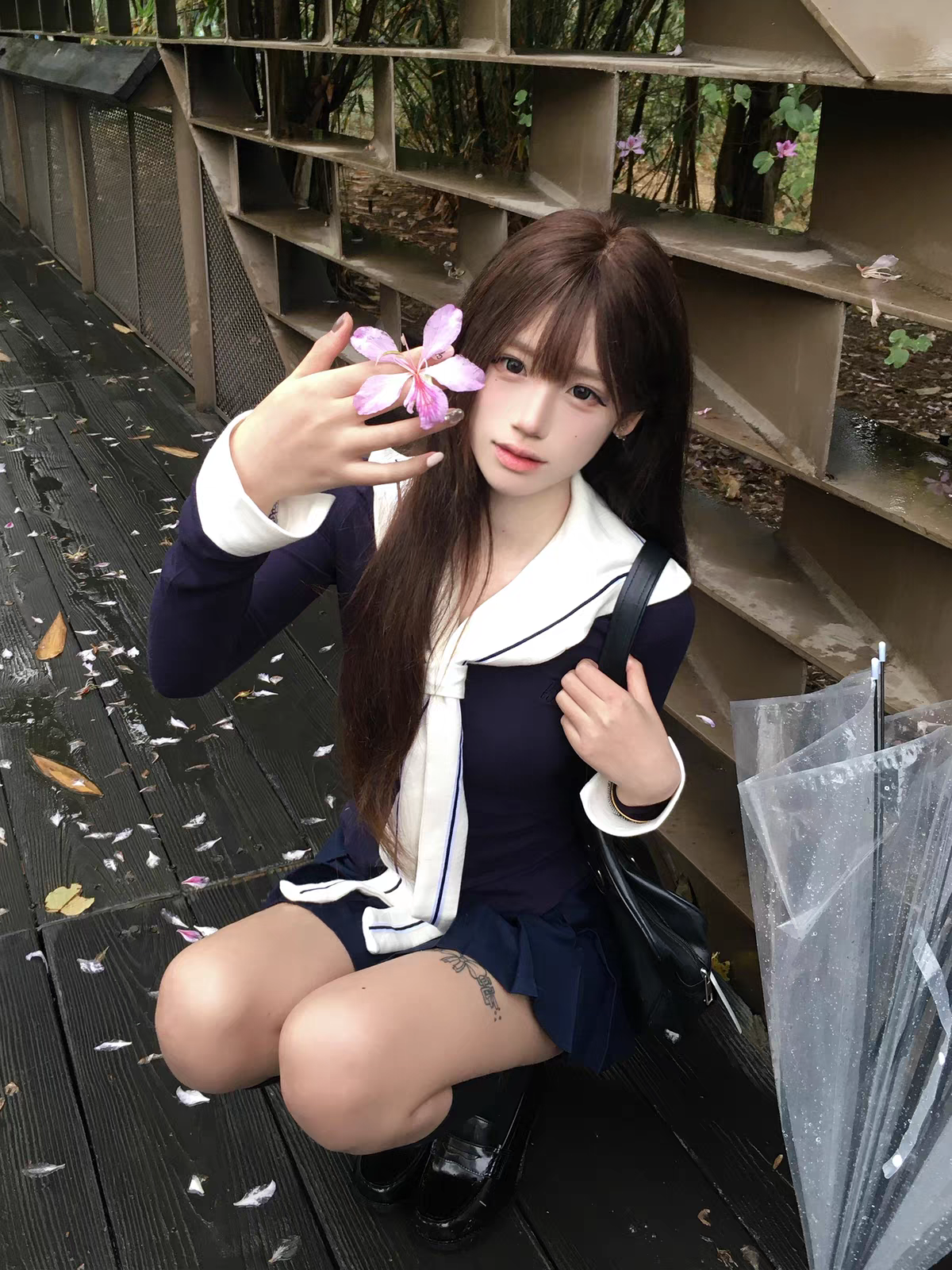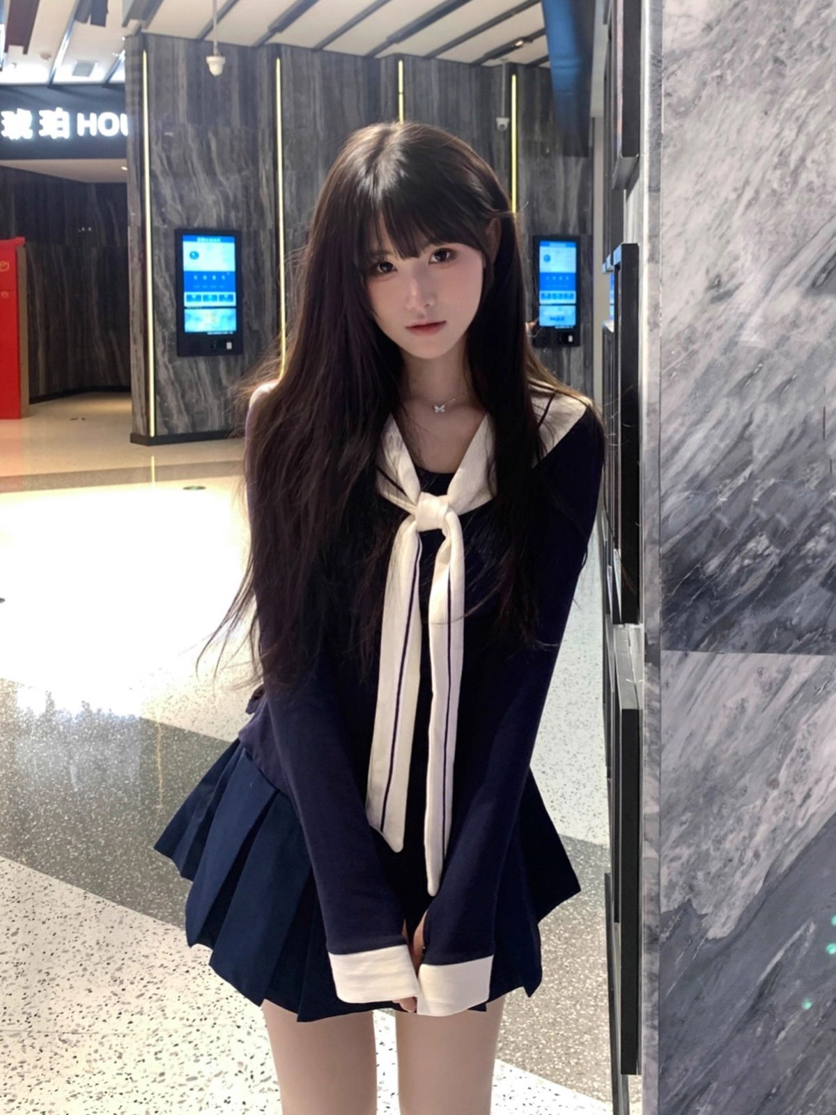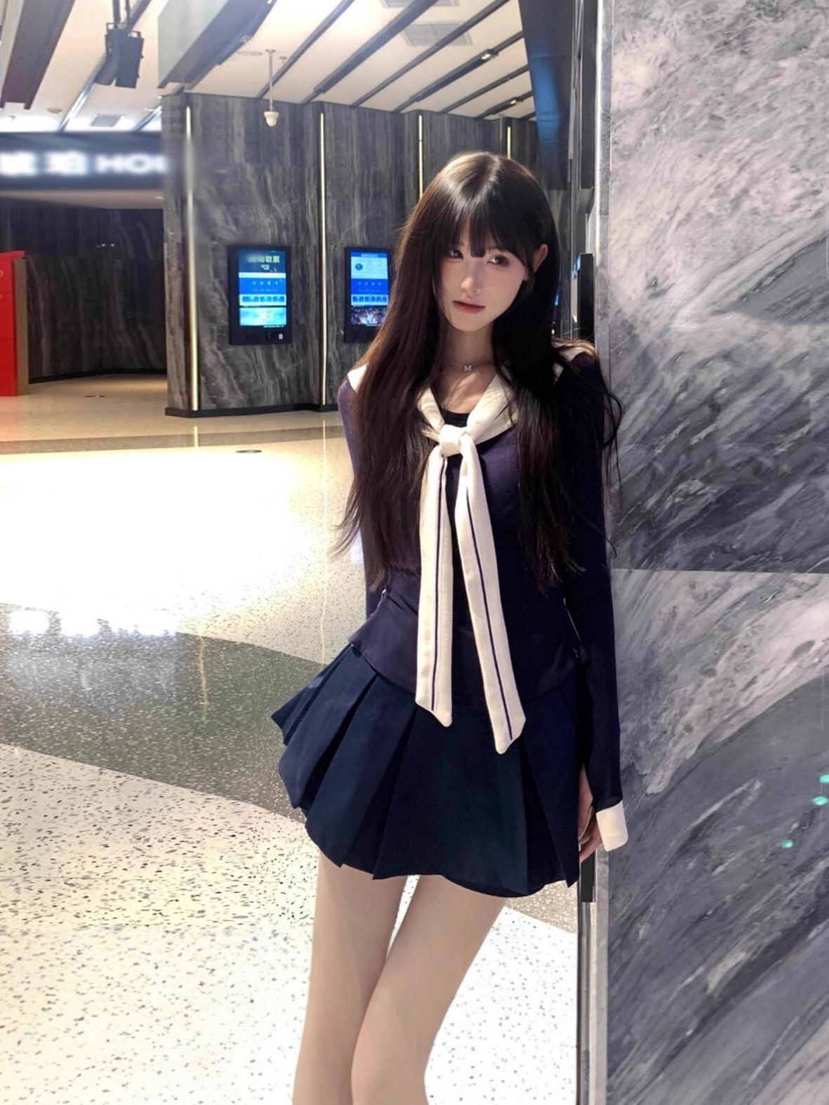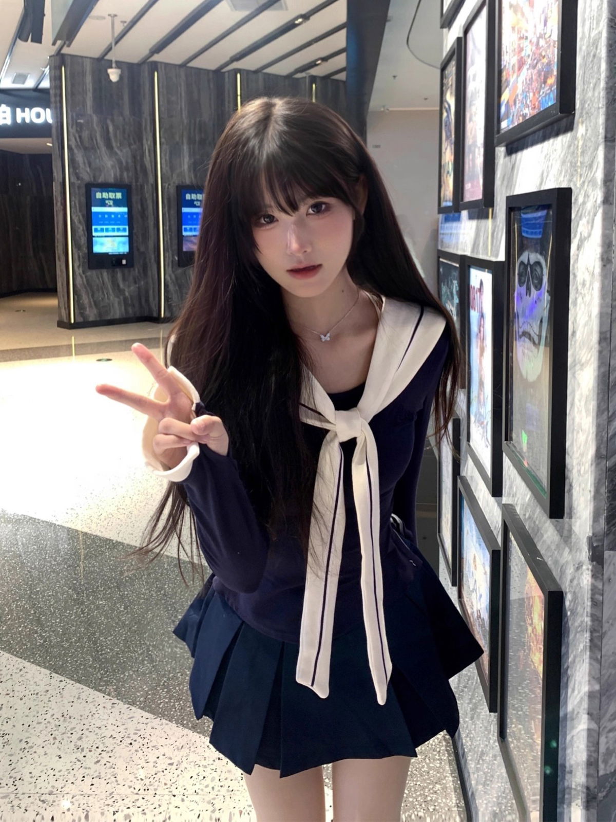 Top Versátil: Camisa entallada en azul marino que incluye un cuello marinero blanco desmontable. Esto te permite usar la prenda de dos formas: con el look completo de marinera o como un básico elegante.