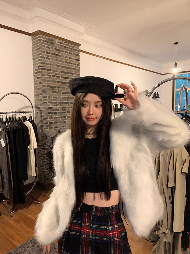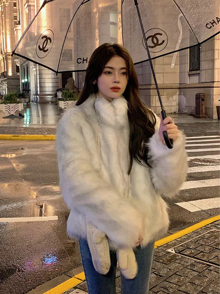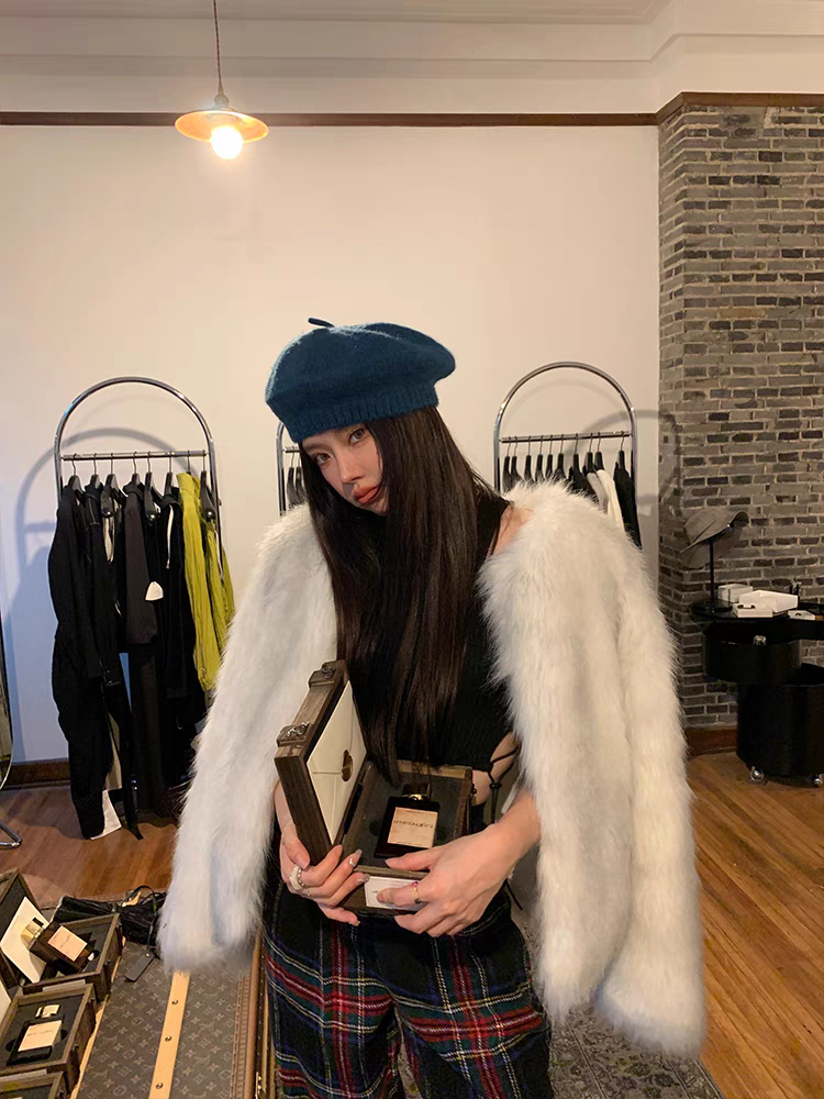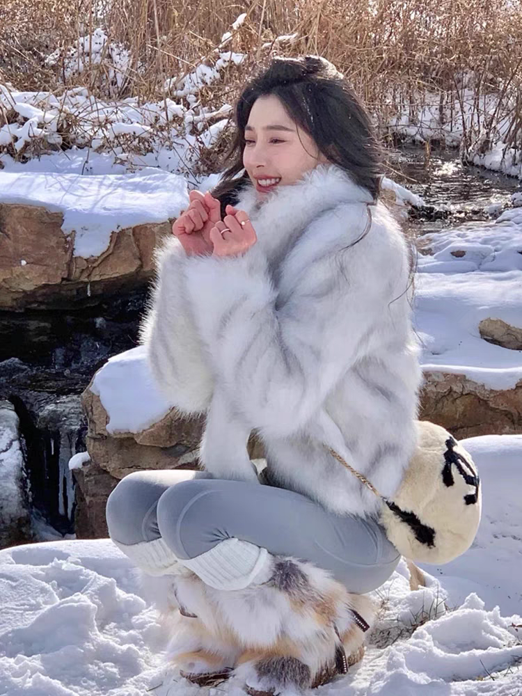 Abrigo de pelo color blanco grisáceo