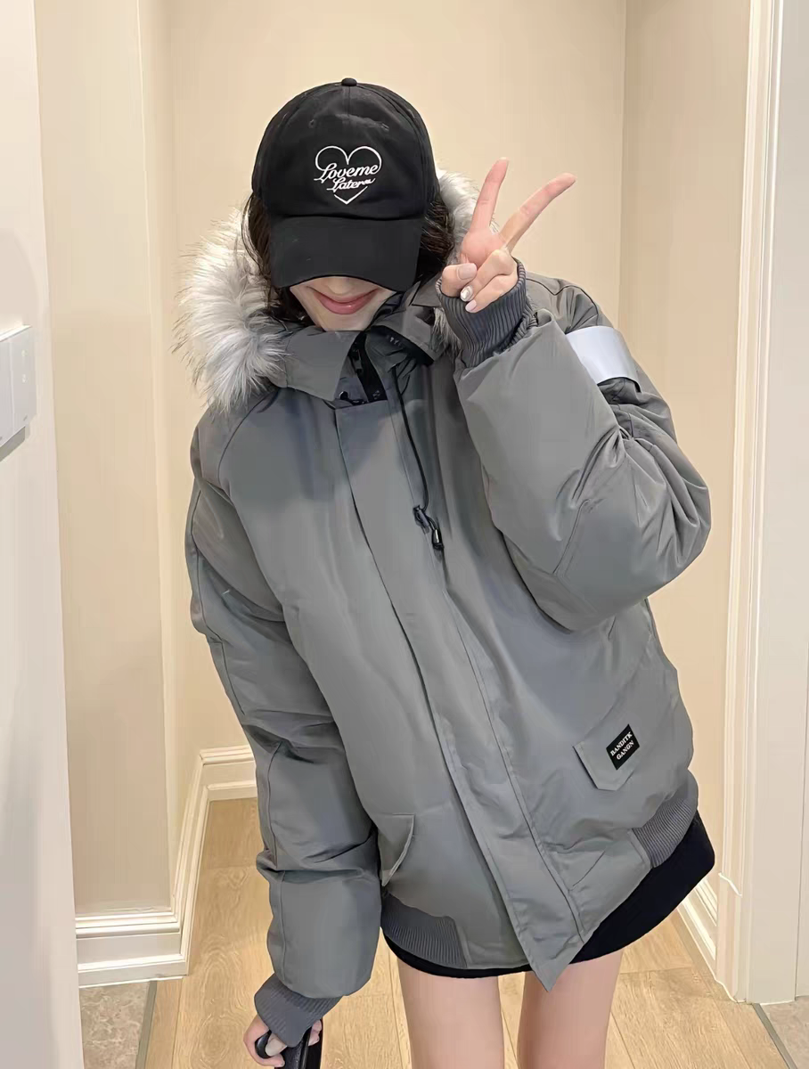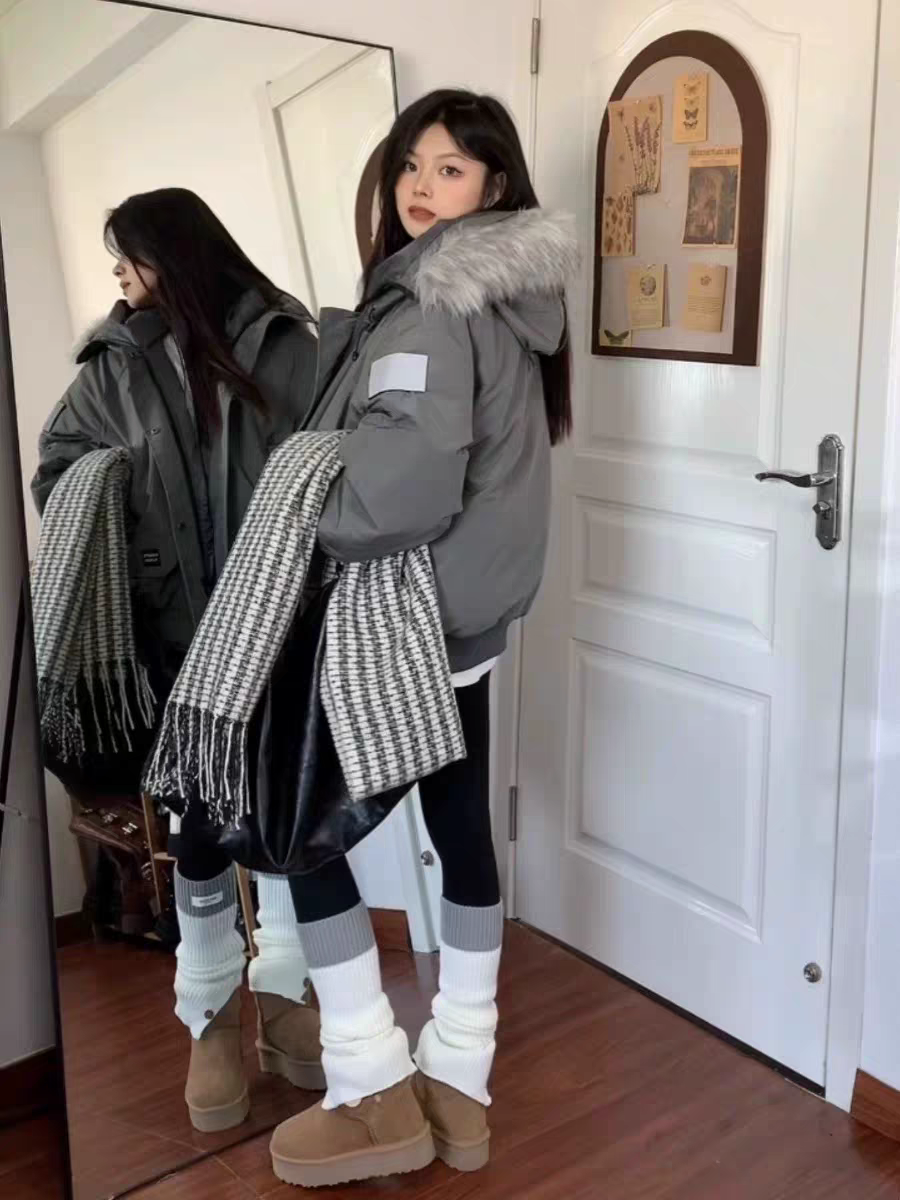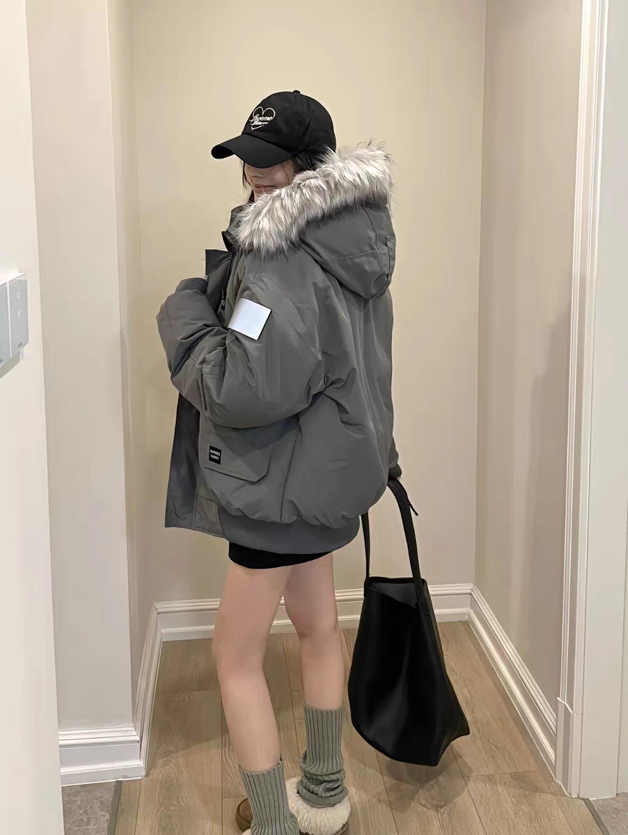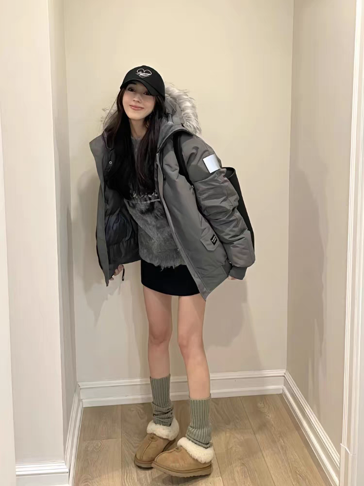 Campera color gris con capucha de piel sintética