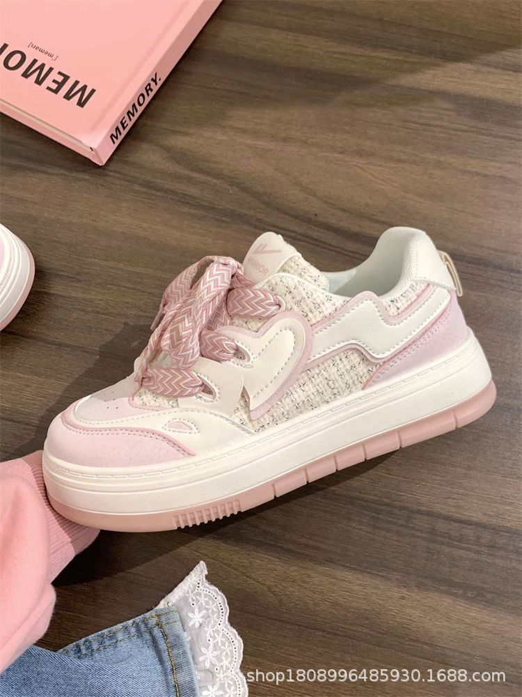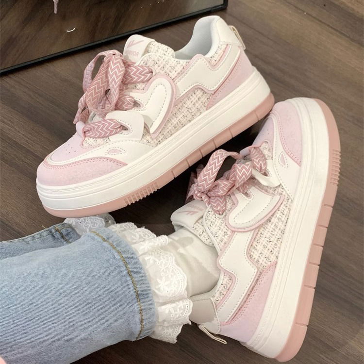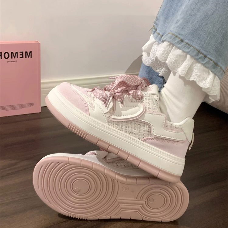 Zapatillas en rosas pastel y cuadrillé con cordones anchos.