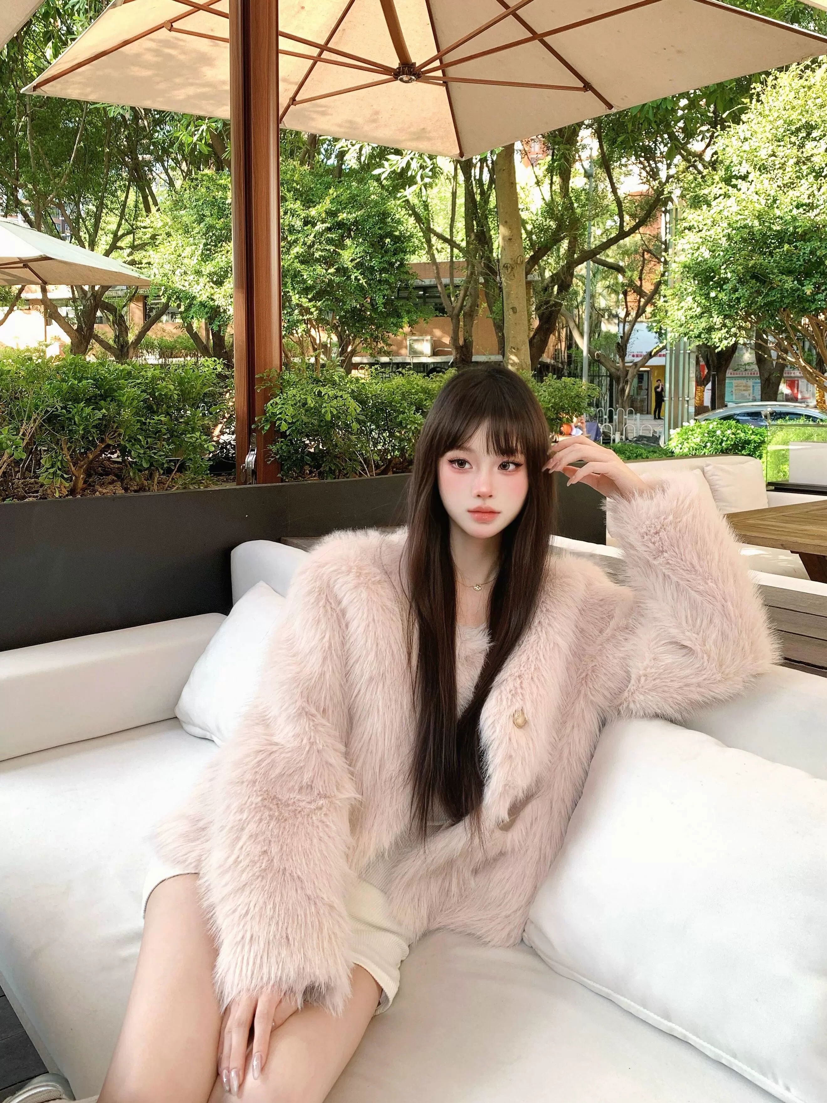 Campera de pelo sintético color rosa