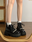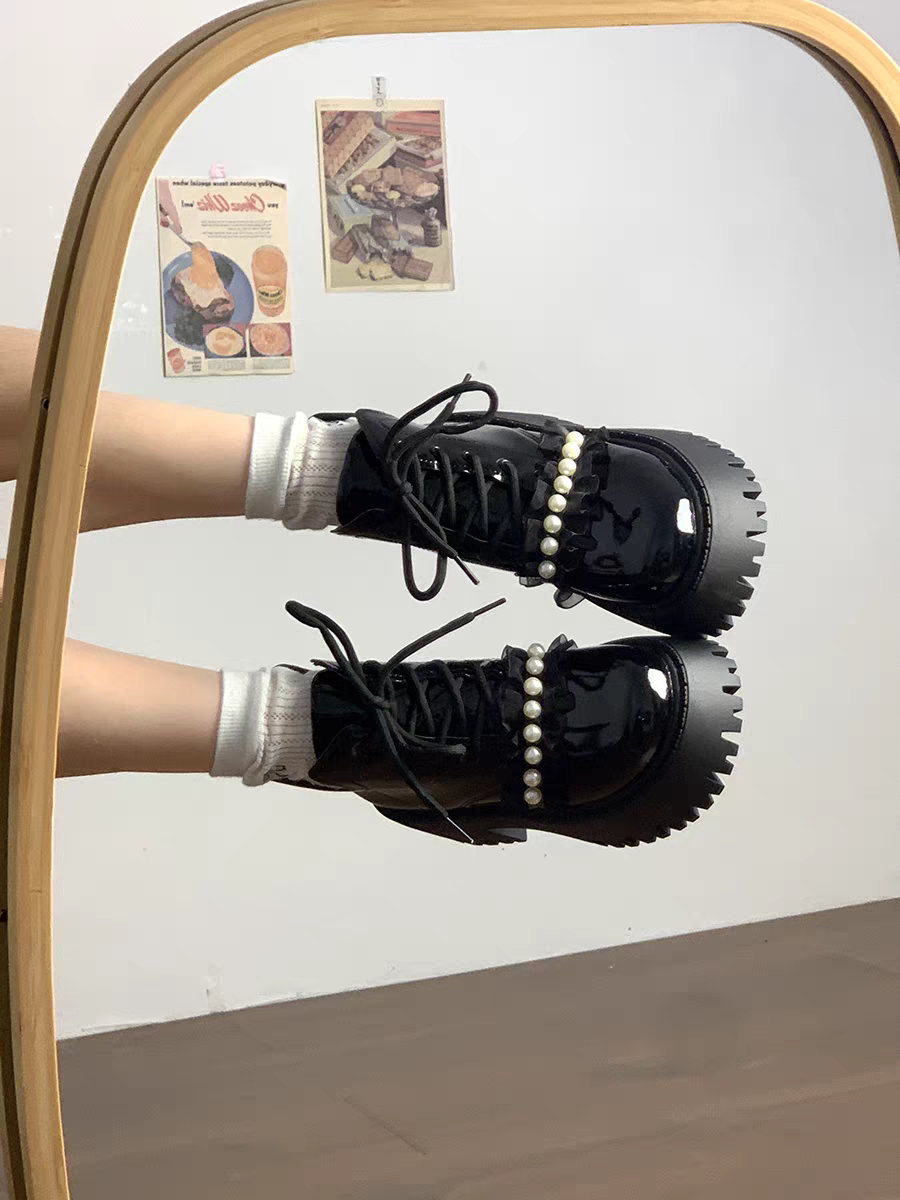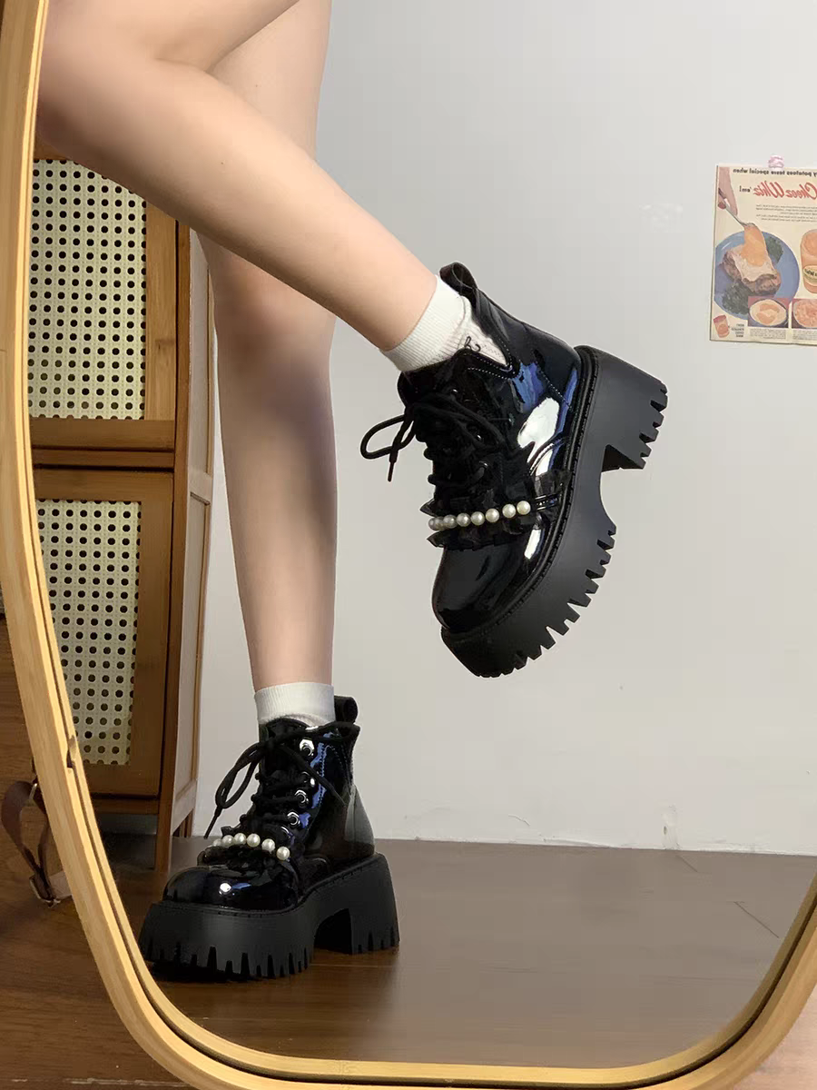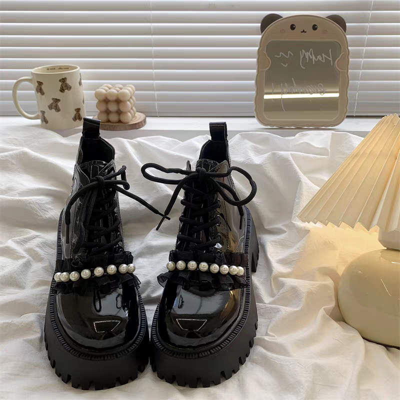Botas tipo borcegos, con detalle de perlas.