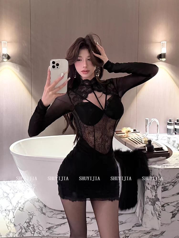 Talle L: Busto 90 cm, cintura 68 cm, caderas 98 cm, Largo de falda 80 cm, largo de manga 64 cm.