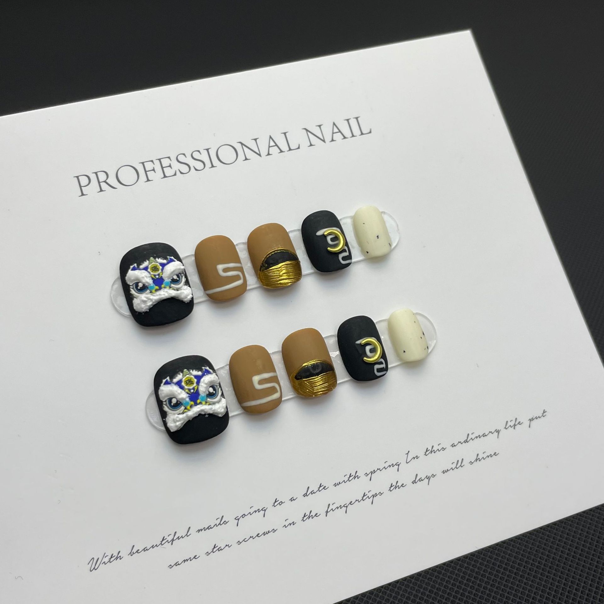Uña press on con diseño de dragon