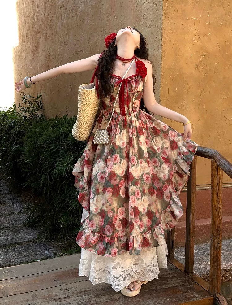 Talle M: Busto 82 cm (ajustable con tirantes), cintura 64 cm, Largo 106,5 cm.