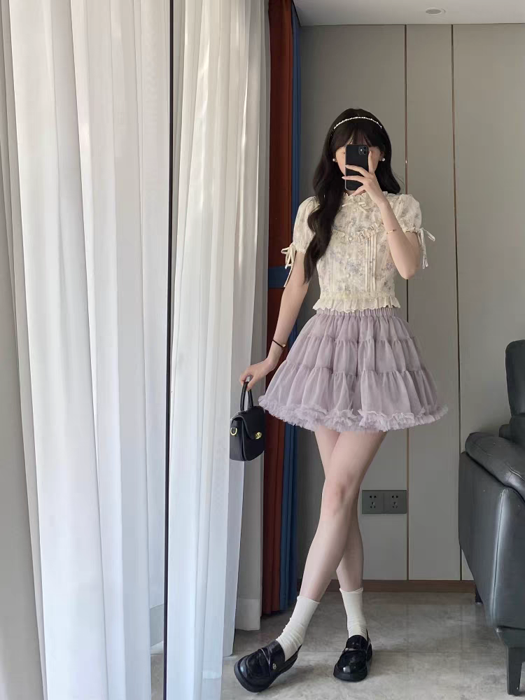 Talle M Top: Busto 84 cm, Largo 44 cm. Pollera: Cintura 64 cm (elástica), largo 36 cm.