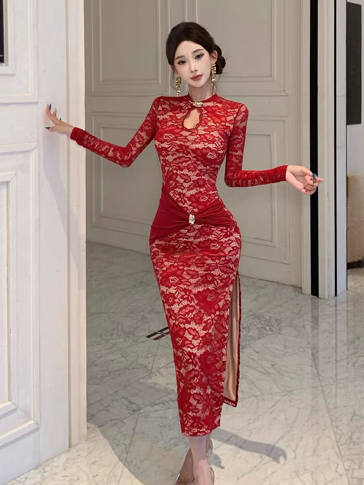 Talle L: Busto 78 cm, cintura 64 cm, ancho de hombros 34 cm, Mangas 62 cm, Largo 136 cm.