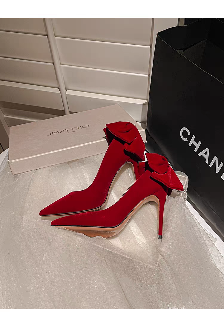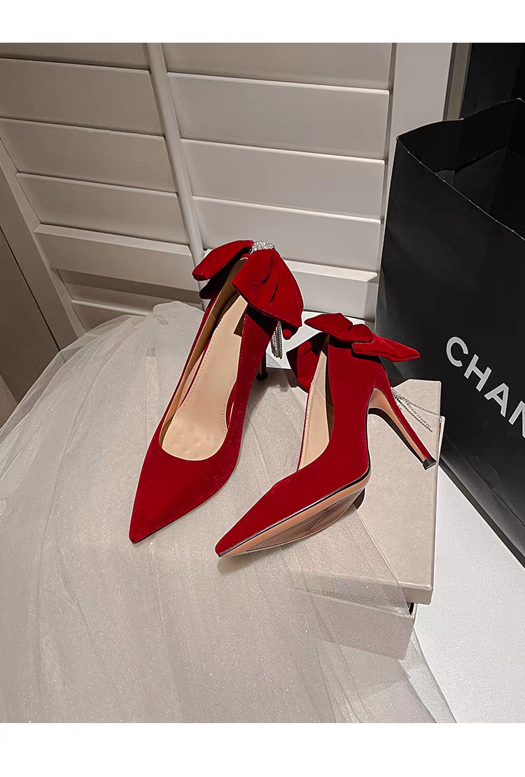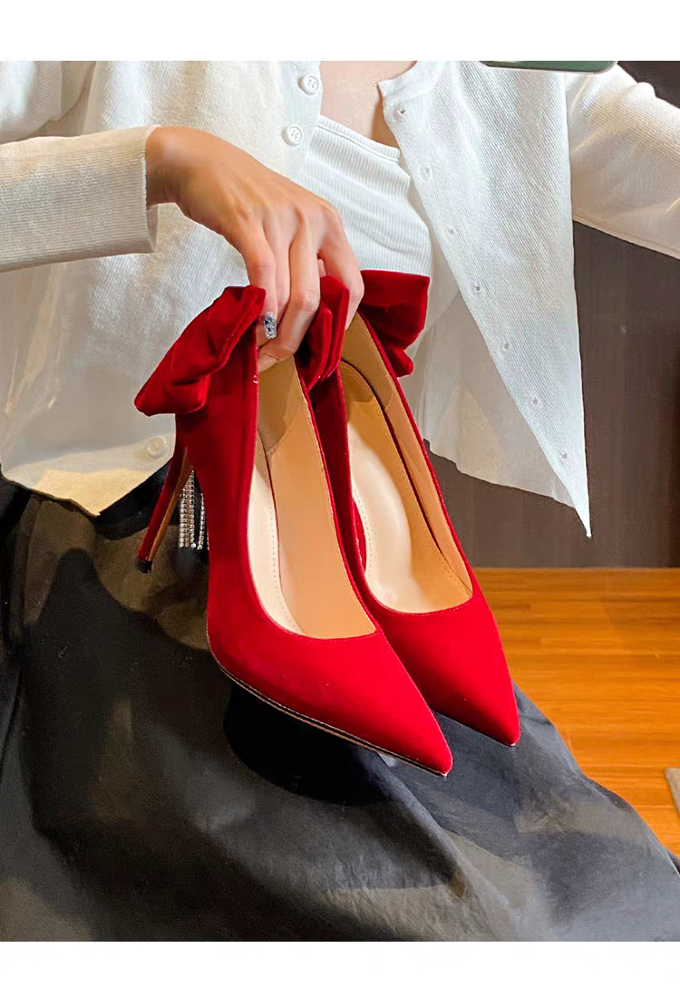 Tacon gamuzado con moño color rojo vino