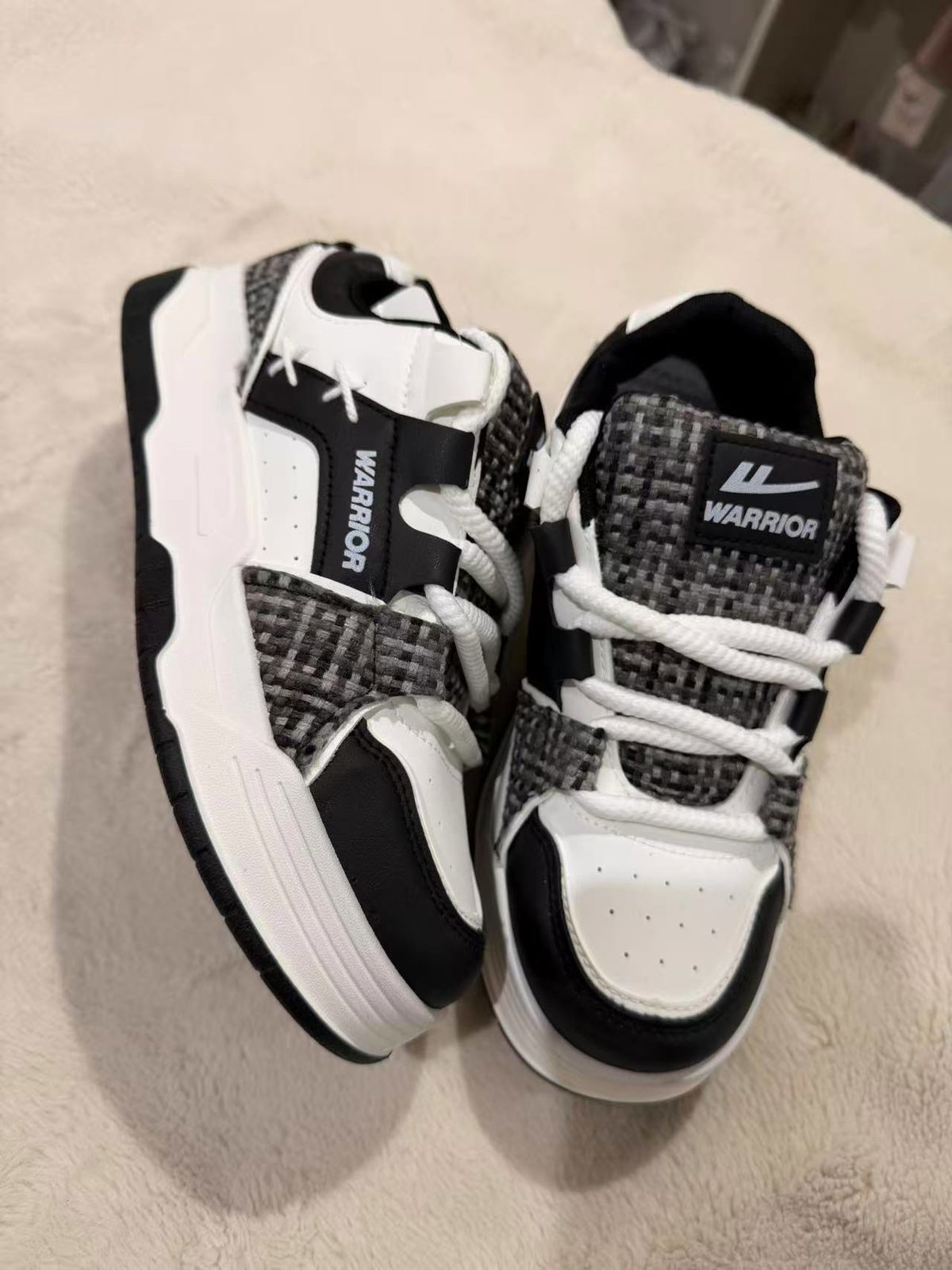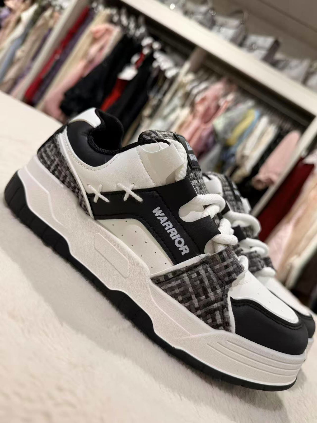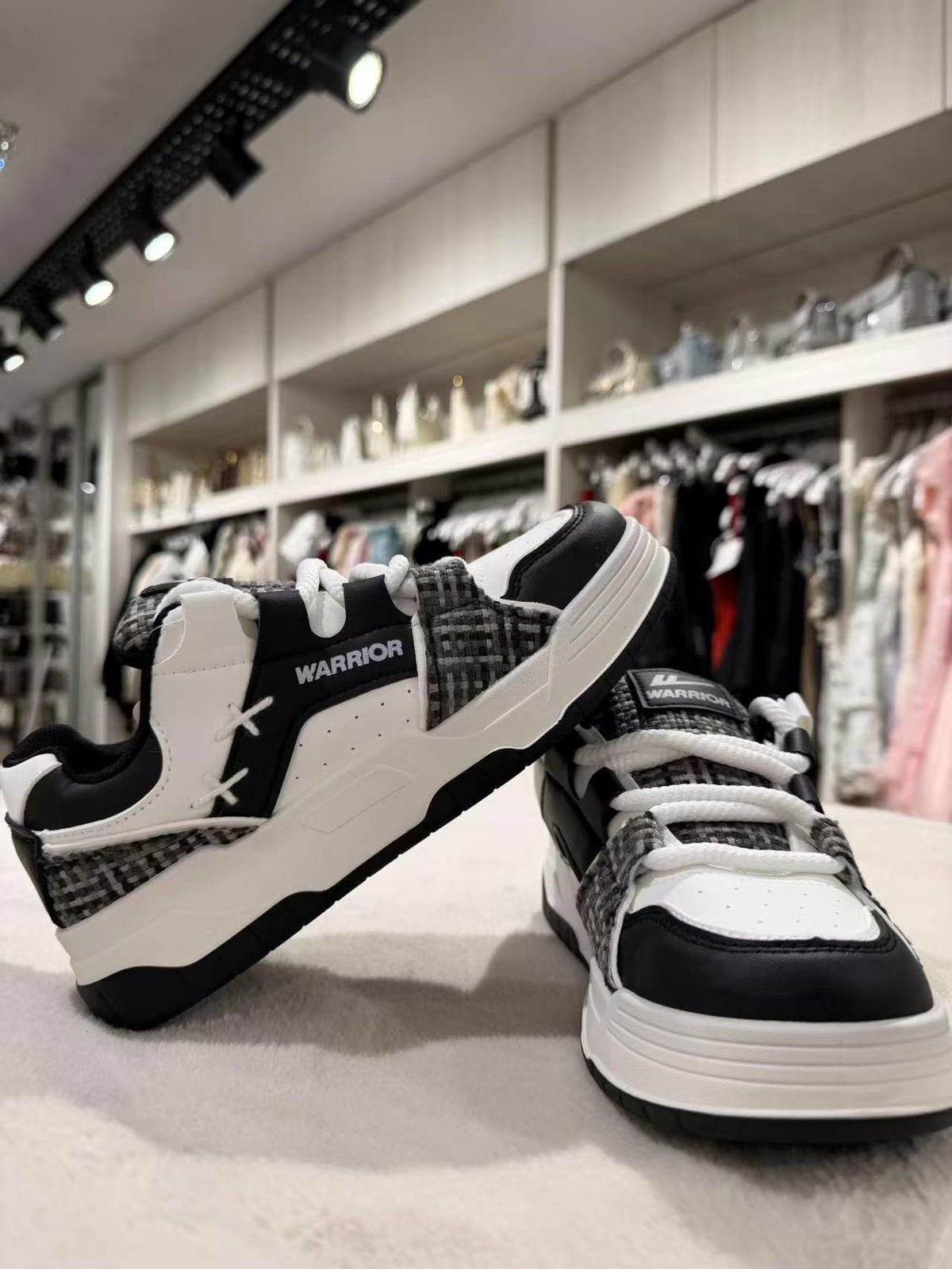 Zapatillas urbanas con diseño moderno en blanco y negro.