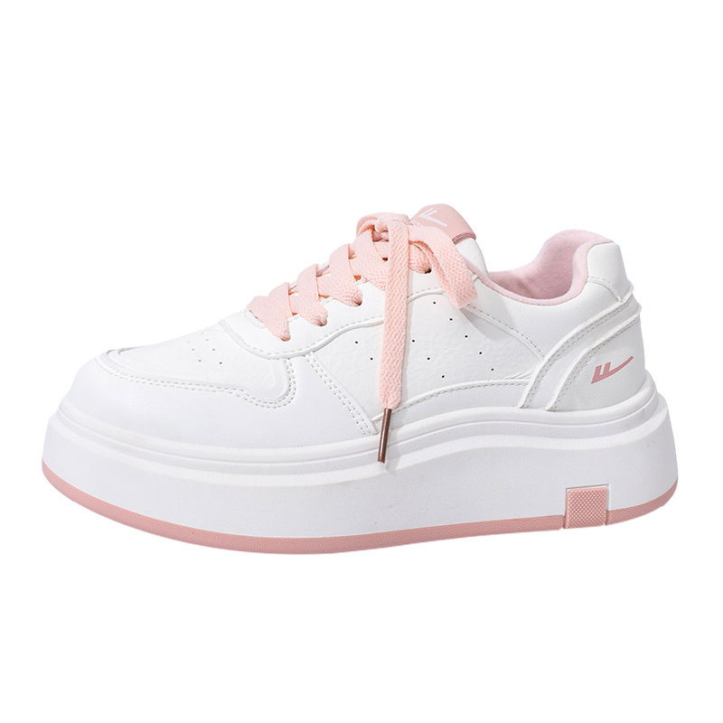 Zapatillas color blanco con cordon rosa