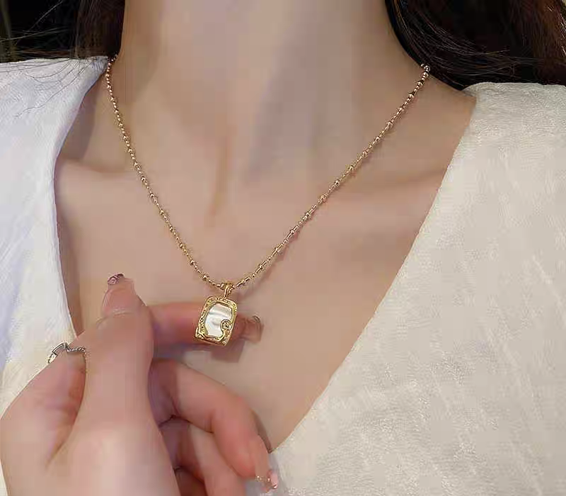 Dije: Placa rectangular con relieve irregular y centro efecto nácar.