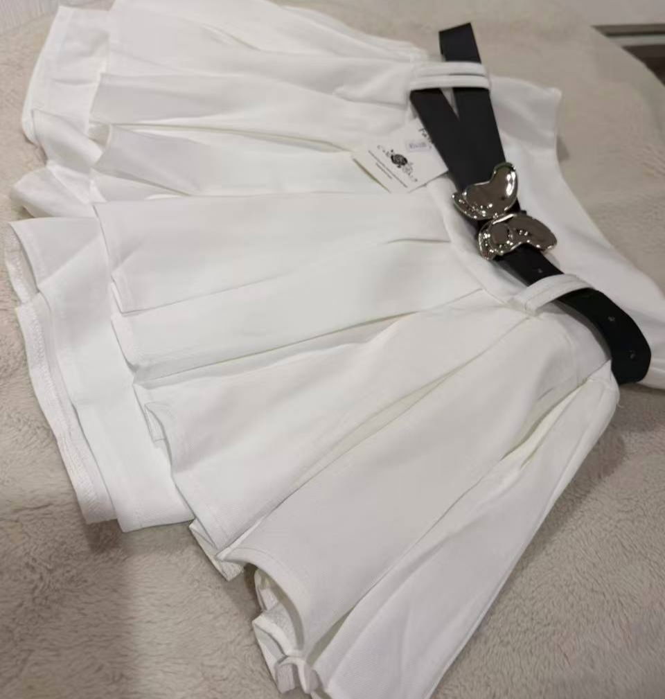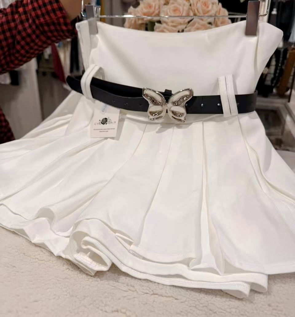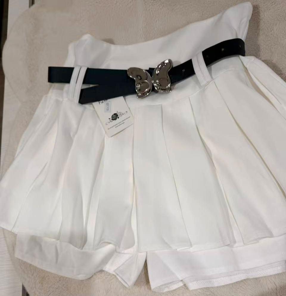 Short Pollera Tableada con Cinturón Mariposa