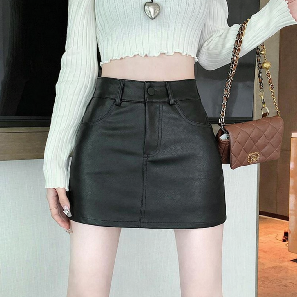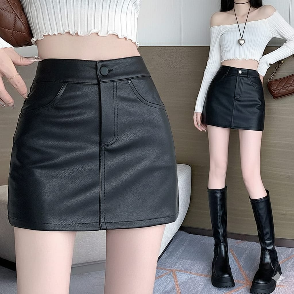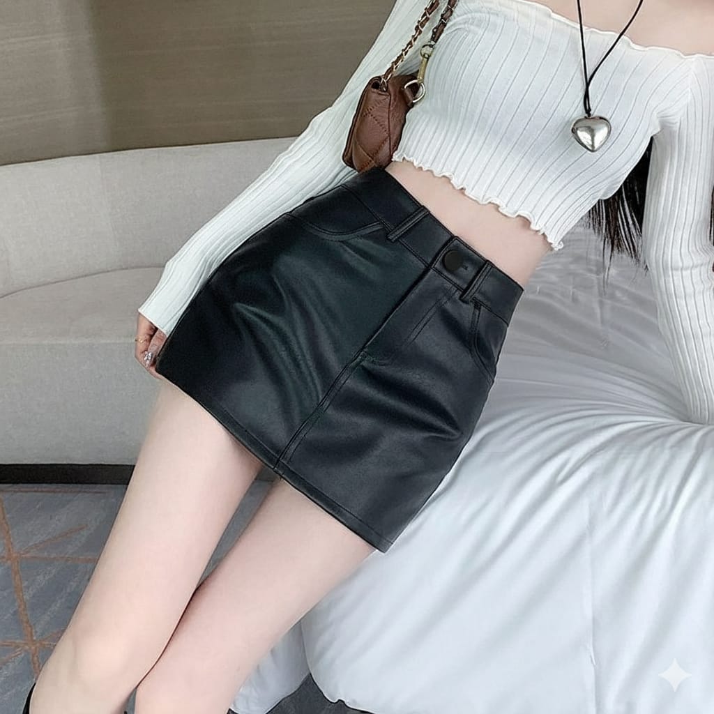 Pollera corta de efecto cuero con diseño clásico y minimal.