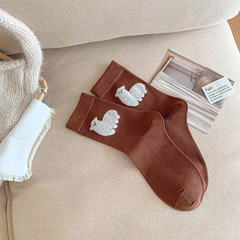 Media en tono marrón cálido con detalle bordado en textura suave. Súper cómoda y abrigada, ideal para looks cozy, girly y aesthetic. Perfecta para usar con zapatillas, mocasines o para estar en casa bien comfy 🤍