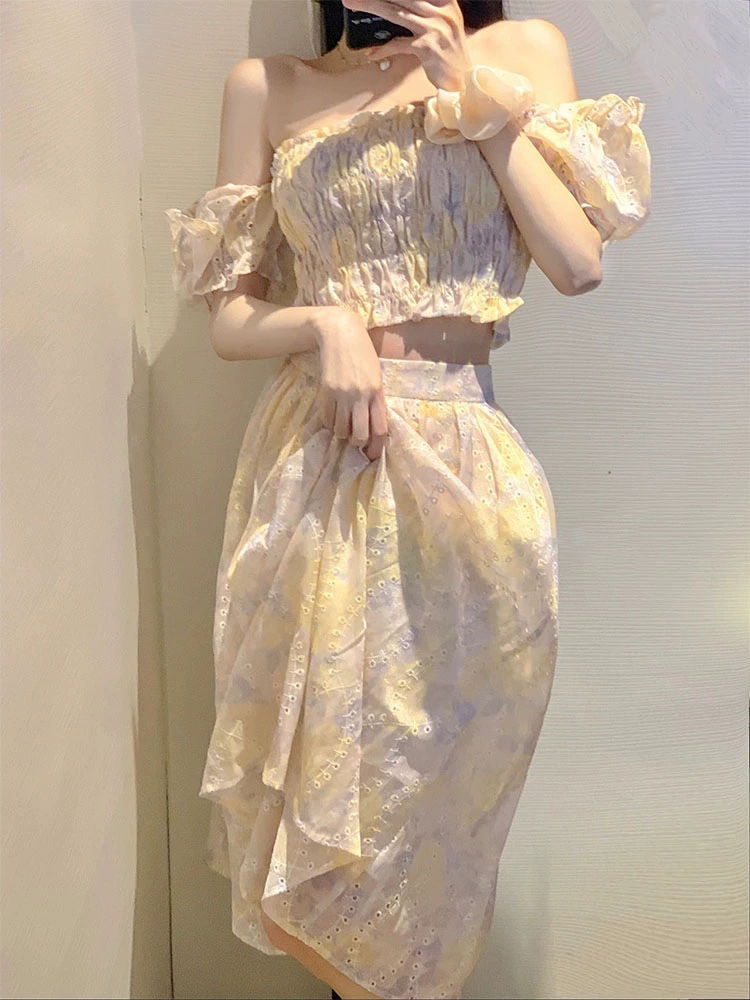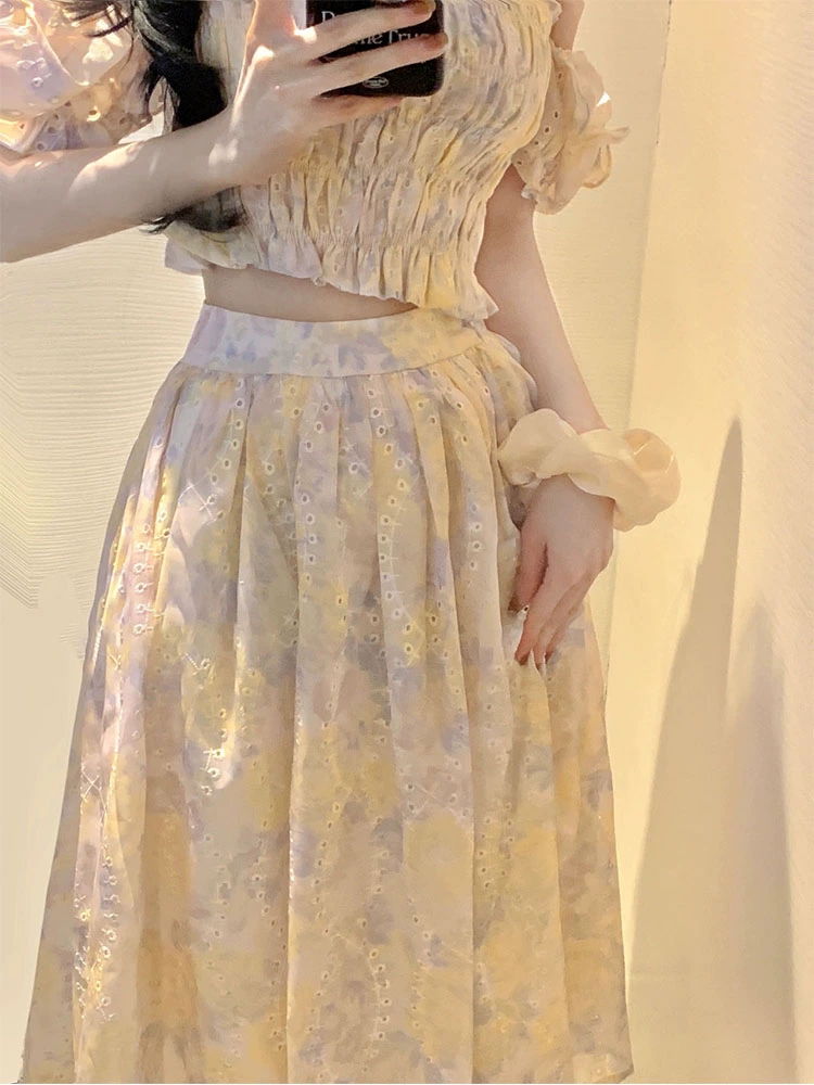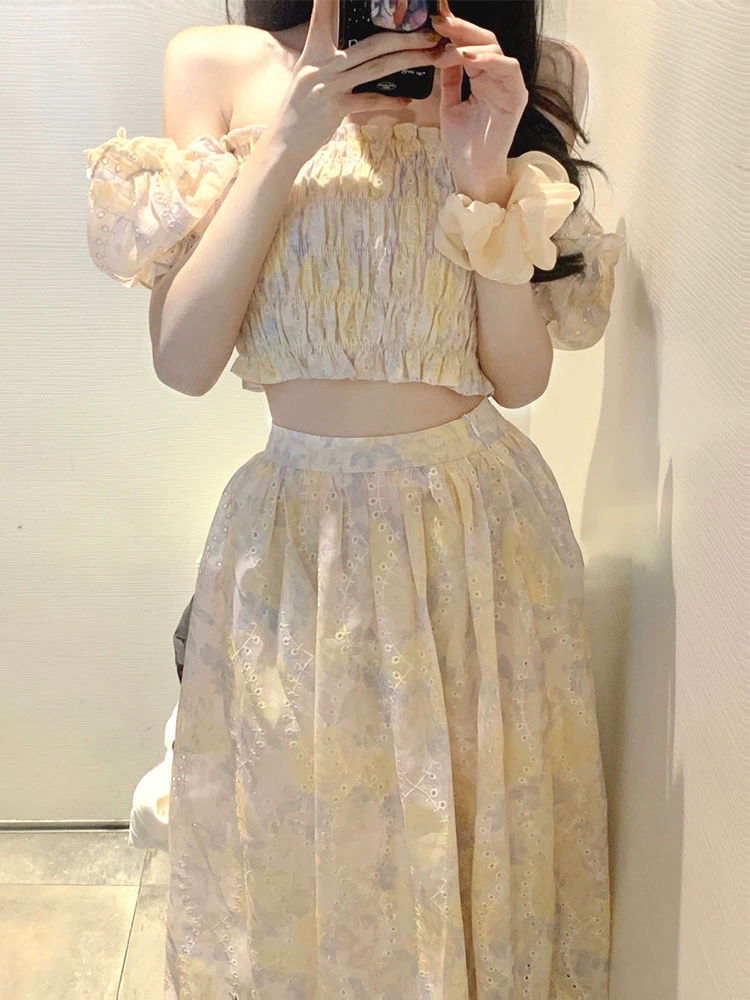 + Talle S: busto 70-85, largo 40, largo de falda 76, cintura 62.