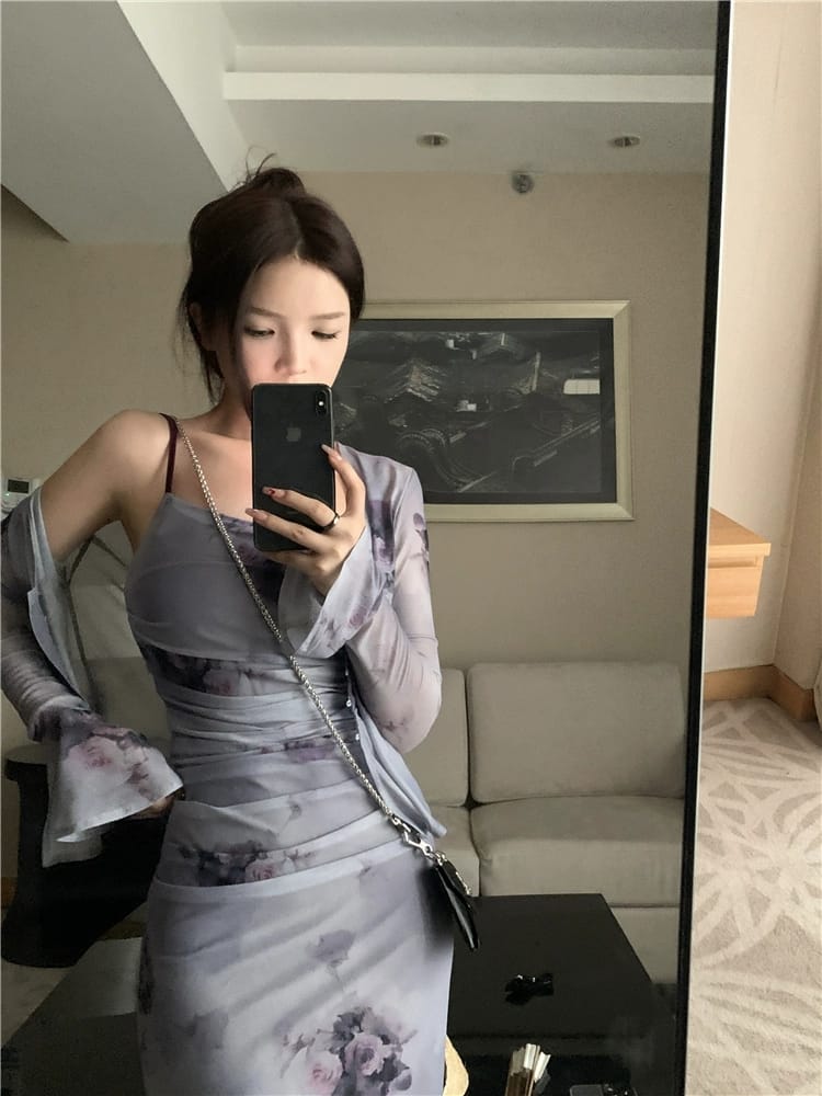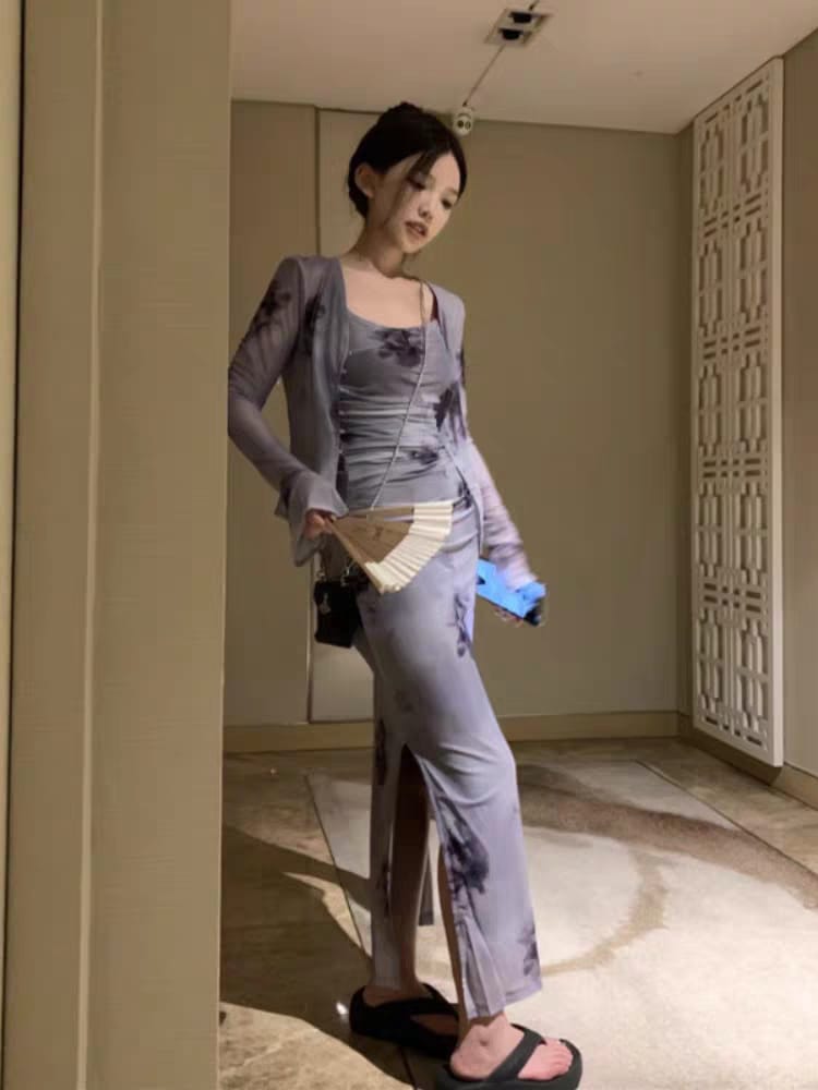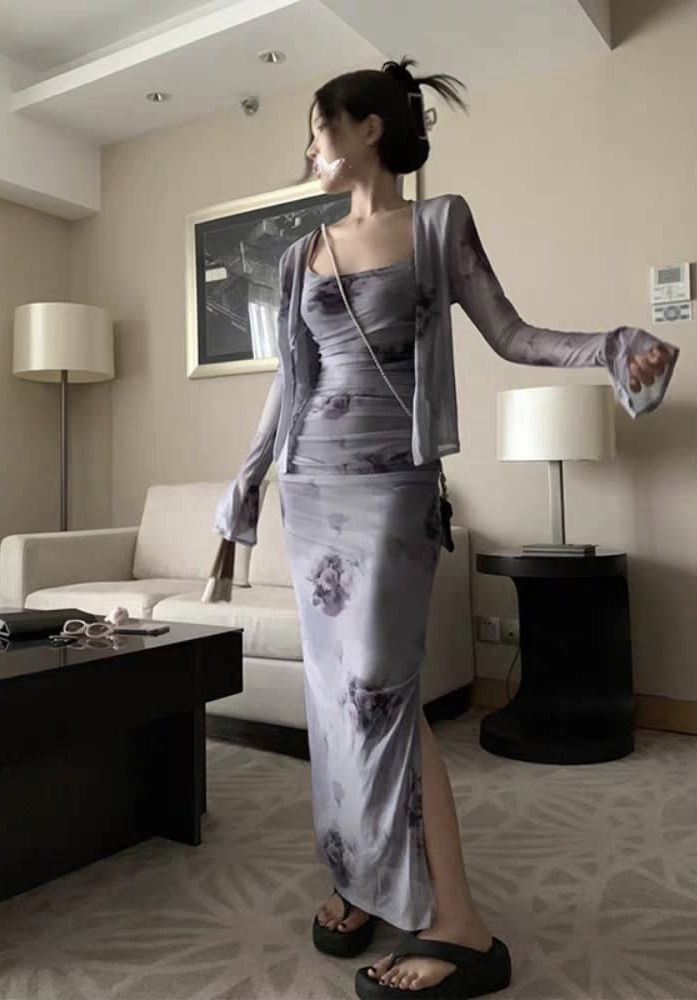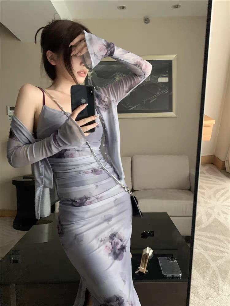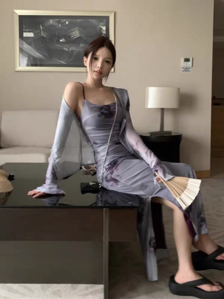 Talle 2XL: Vestido Busto 108, Cintura 98, Largo 103. Cárdigan Hombro 46, Busto 110, Mangas 64, Largo 51.