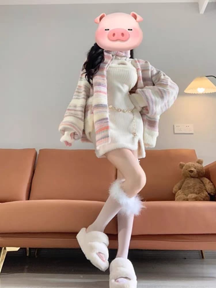 Abertura Lateral: Un detalle "slit" en la pierna, también decorado con peluche, para un look más estilizado.