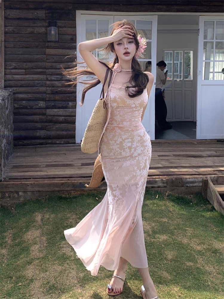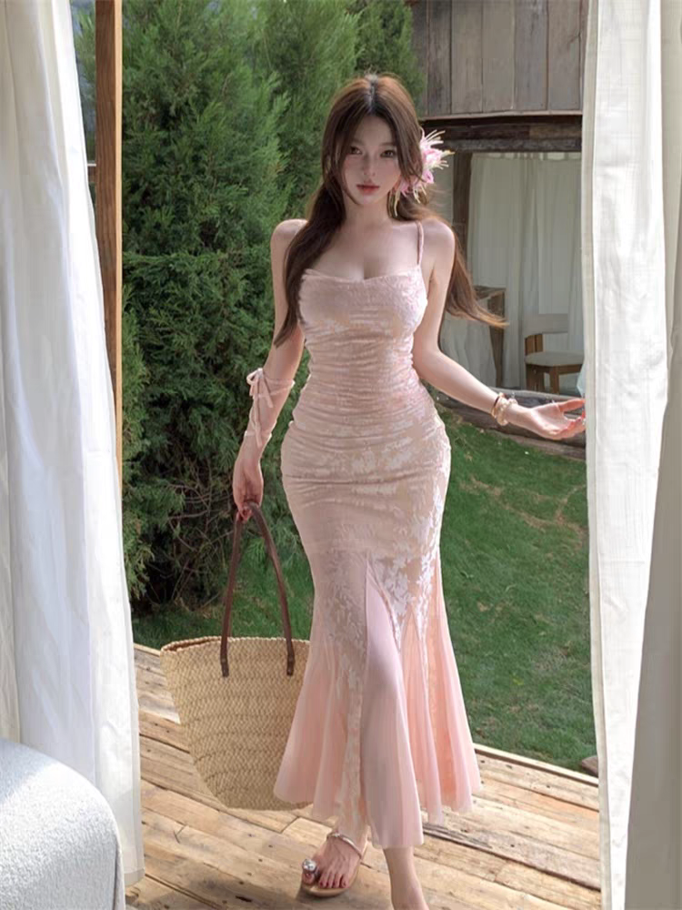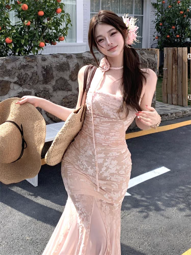 Vestido Corte Sirena Romántico con Flores en Relieve